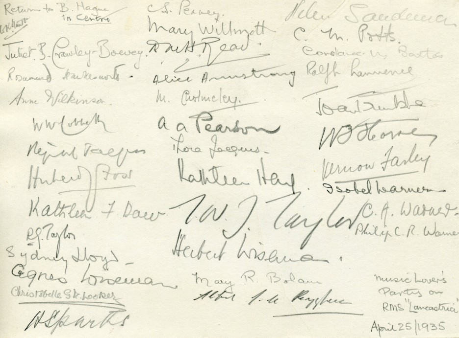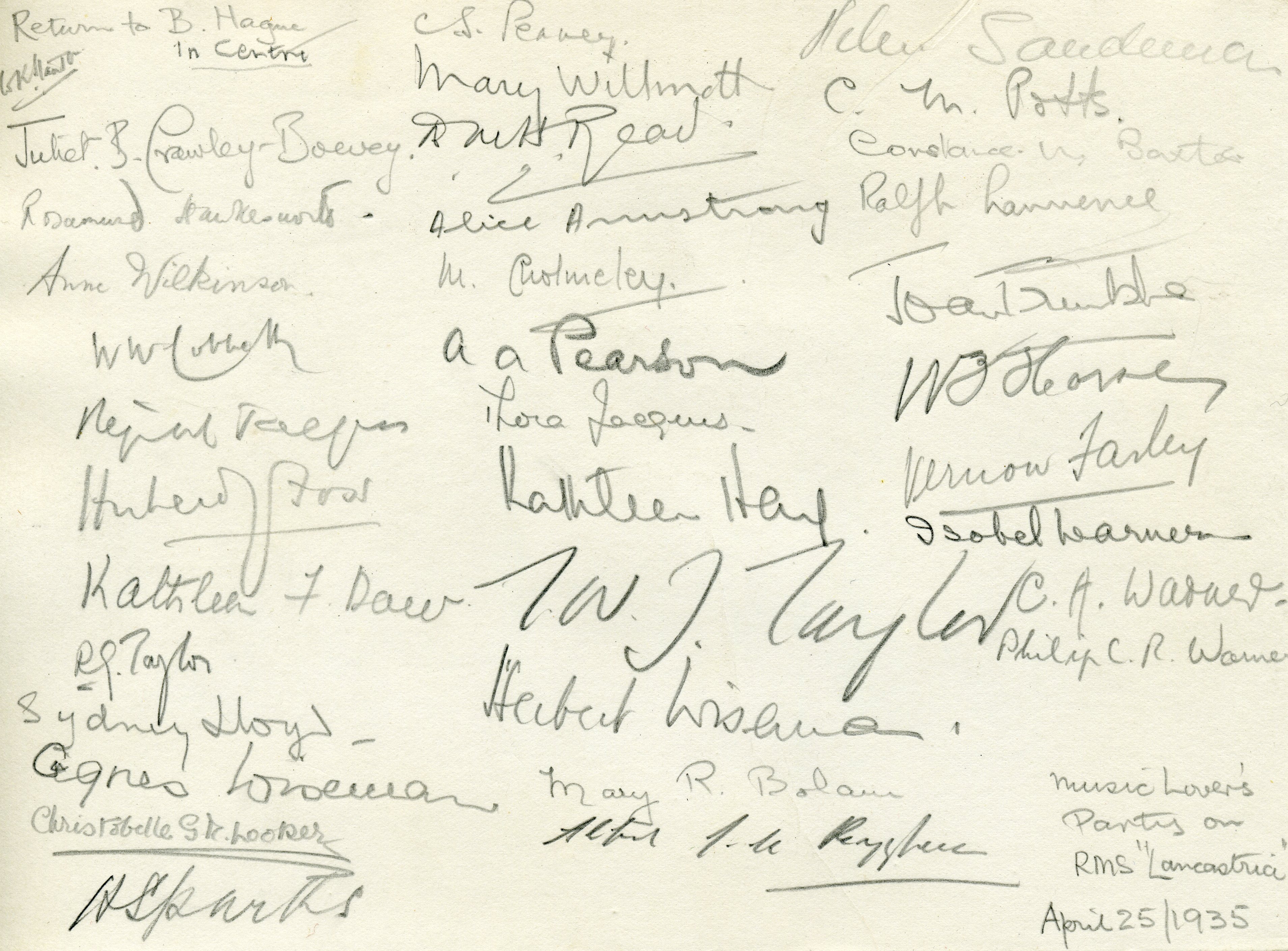 Signatures of attendees, including Juliet B Crawley-Boevey