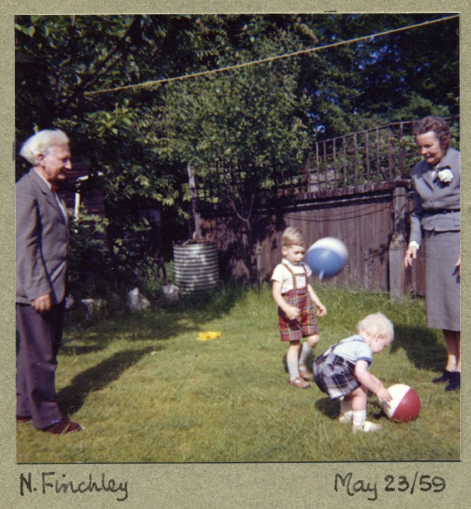Bernard Hague, Robert and Andrew Mackay, Blanche Vail, Mayfield Avenue. May 23 1959